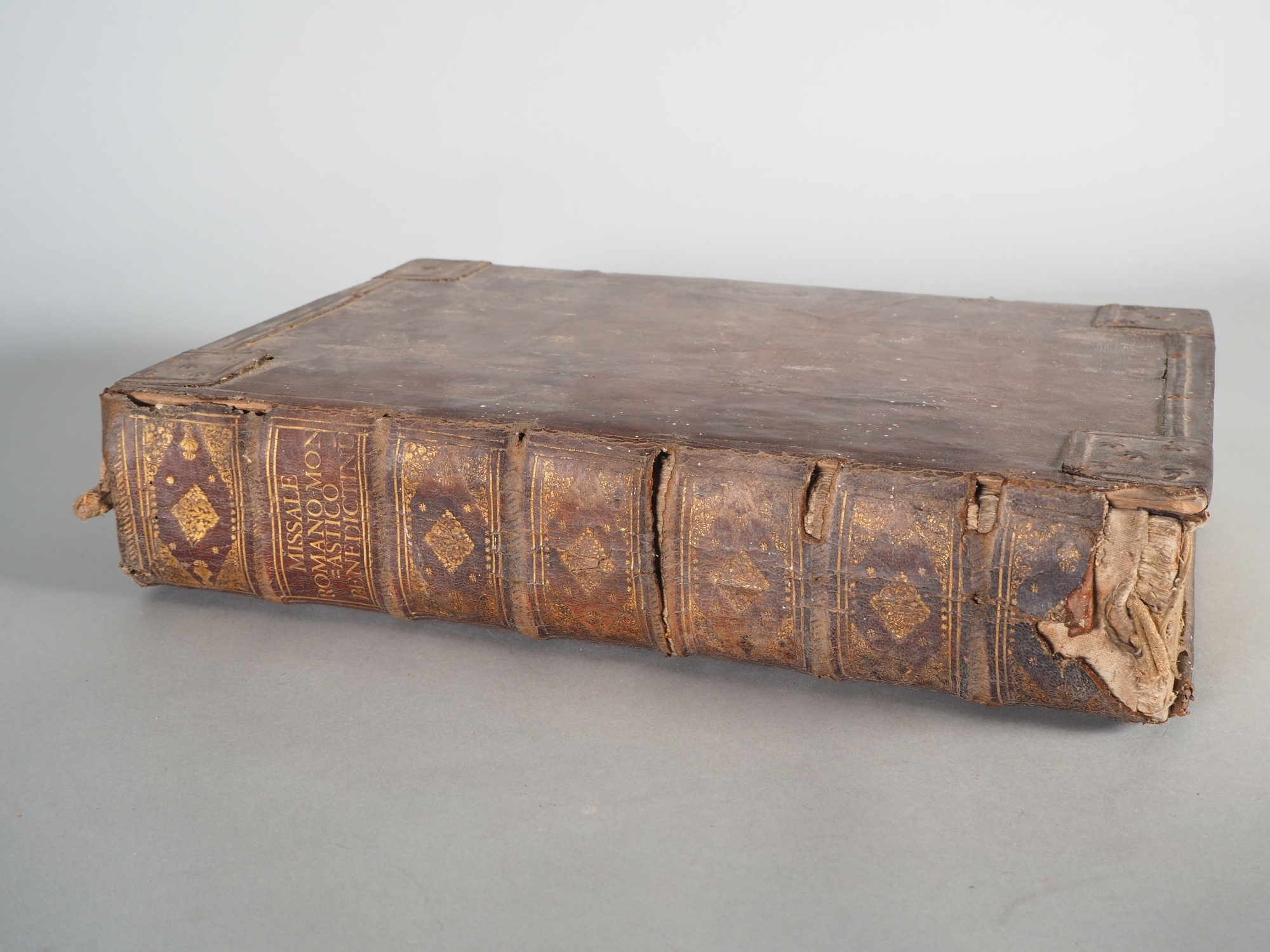 Messbuch gedruckt 1759 von Johann Eberhard Kälin in Einsiedeln durch die Fürstliche Stiftsdruckerei. Beinhaltet Illustrationen, Musiknoten und Lateinische Texte. Mit stärkeren Gebrauchs- und Lagerungsspuren. L. 38cm, B: 25cm H: 8cm.