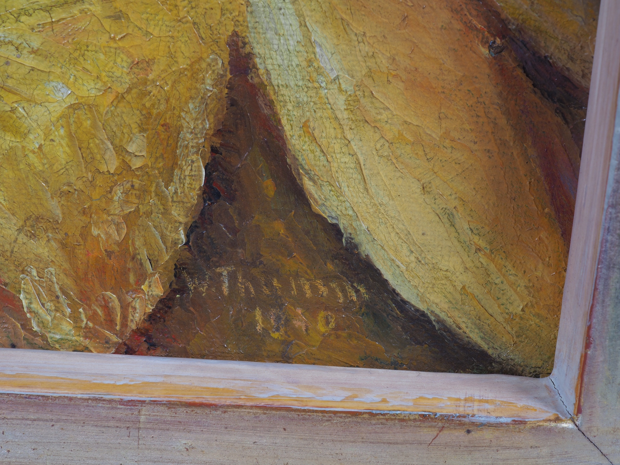 Öl auf Leinwand, Stillleben mit Früchteschale, Weinflasche und Gläsern aus dem Jahr 1940. Rechts unten signiert und datiert. Im originalen Holzrahmen. Ein atmosphärisches Stillleben des Stuttgarter Künstlers und Bildhauers Walter Thumm. Die Komposition zeigt eine reich gefüllte Schale mit roten und grünen Äpfeln, begleitet von einer dunklen Weinflasche, zwei Gläsern auf einem gelblichen Tischtuch. Der Einsatz von Licht und Farbe verleiht der Szene eine warme, fast impressionistische Wirkung, während die kräftigen Pinselstriche dem Werk eine lebendige Textur verleihen. Thumm machte von 1925 – 1928 die Steinbildhauer-Lehre, parallel hierzu Besuch von Abendkursen im Modellieren, 1949 Meisterprüfung als Steinbildhauer und Gründung einer eigenen Werkstatt, in enger Freundschaft und Zusammenarbeit mit dem schwäbischen Bildhauer Prof. Fritz Nuss. Ausstellungen im Stuttgarter Raum, u.a. Filderstadt. Sowie nennenswert die „Lebensspenderin“ am Ziehbrunnen vor dem Rathaus in Zuffenhausen, nach dem Entwurf von Prof. Fritz Nuss, durch Thumm umgesetzt. Gesamtmaße: 38 x 53cm.
