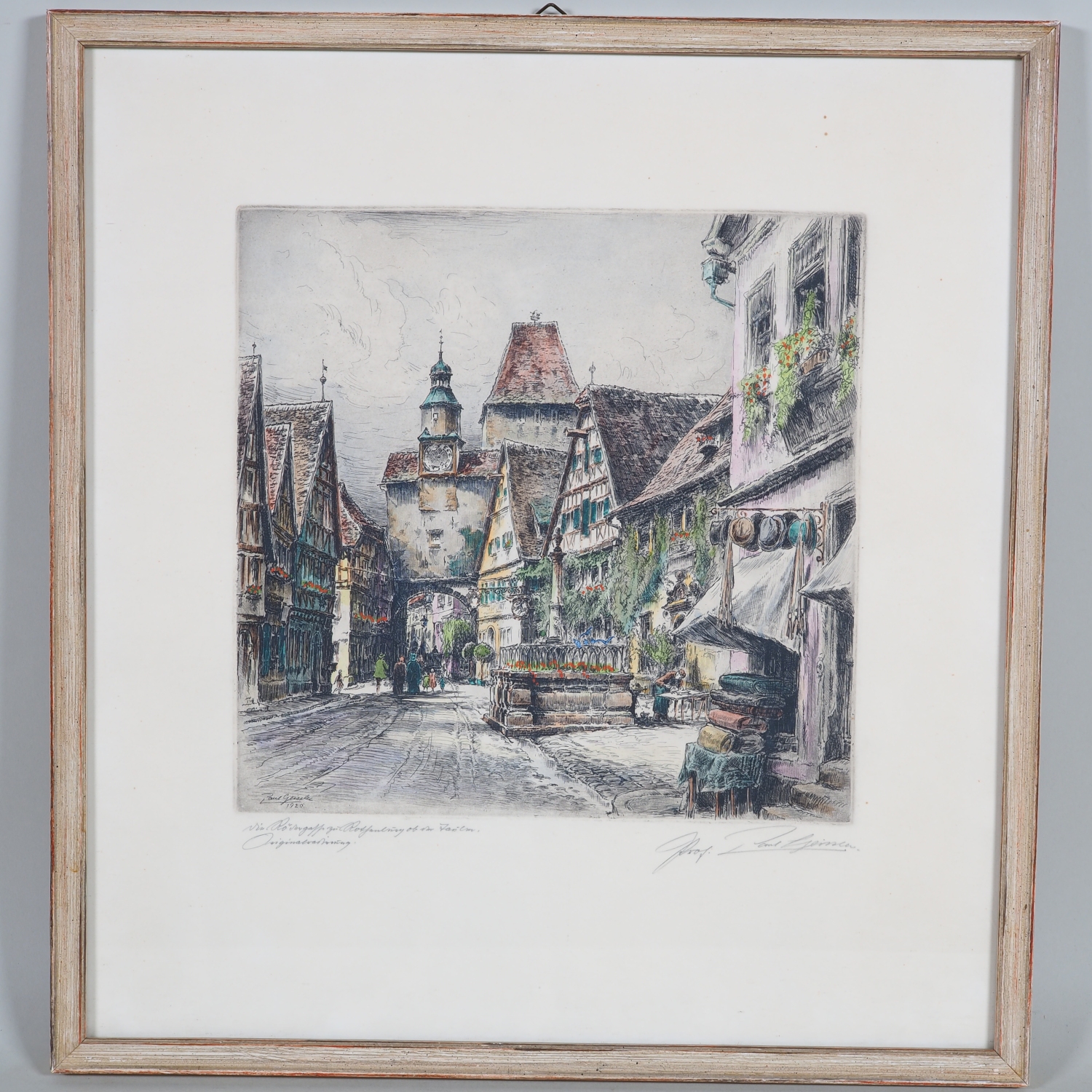 eine Original Farb-Radierungen mit Ansicht von Rothenburg ob der Tauber Rödergasse und Markusturm, mit Bleistift betitelt und handsigniert. Sowie in der Platte signiert !. Unter Glas gerahmt, 35 x 38cm.