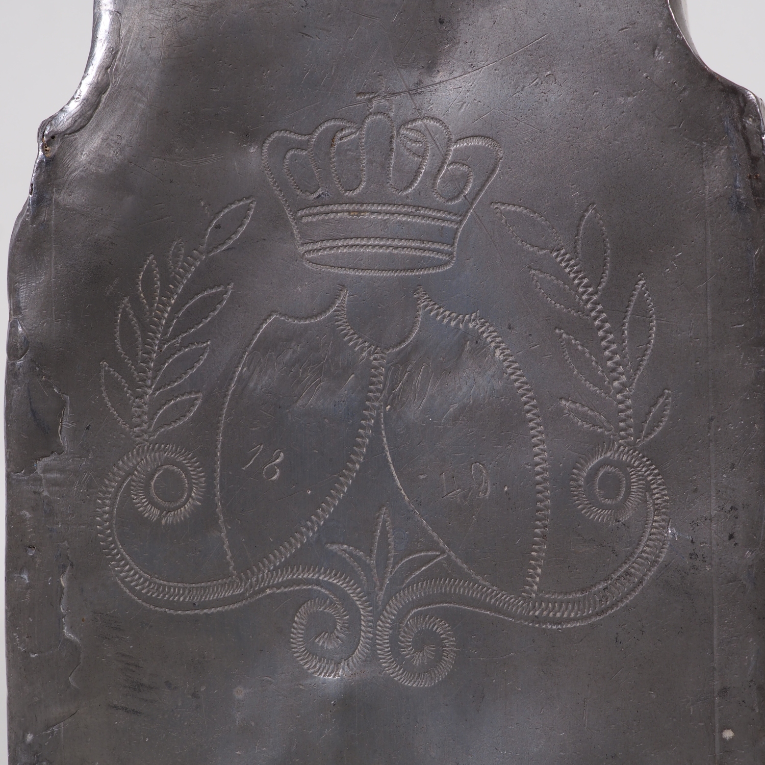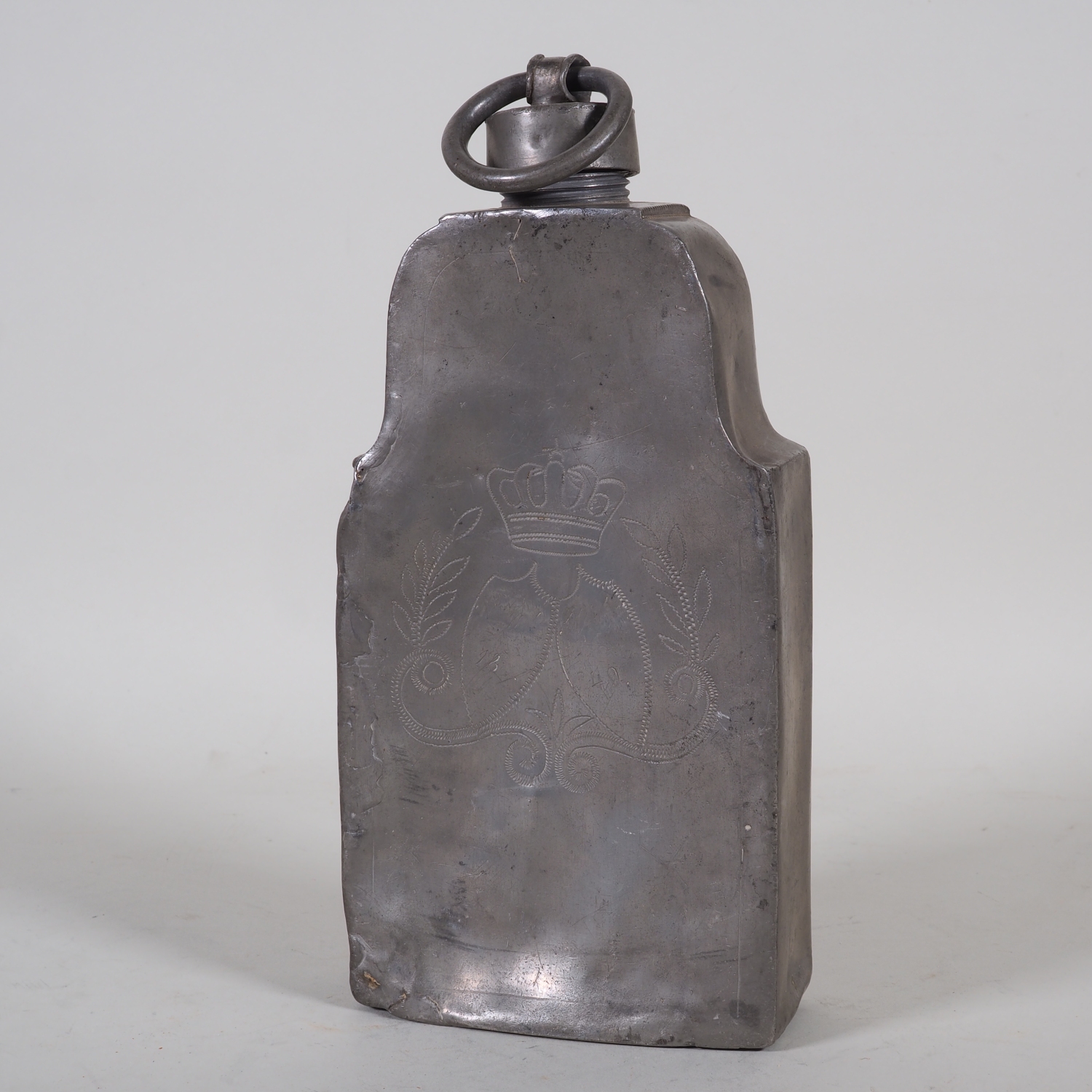 Zinn Schraubflasche mit Wappengravur, vmtl. für Wein, ca. 1849