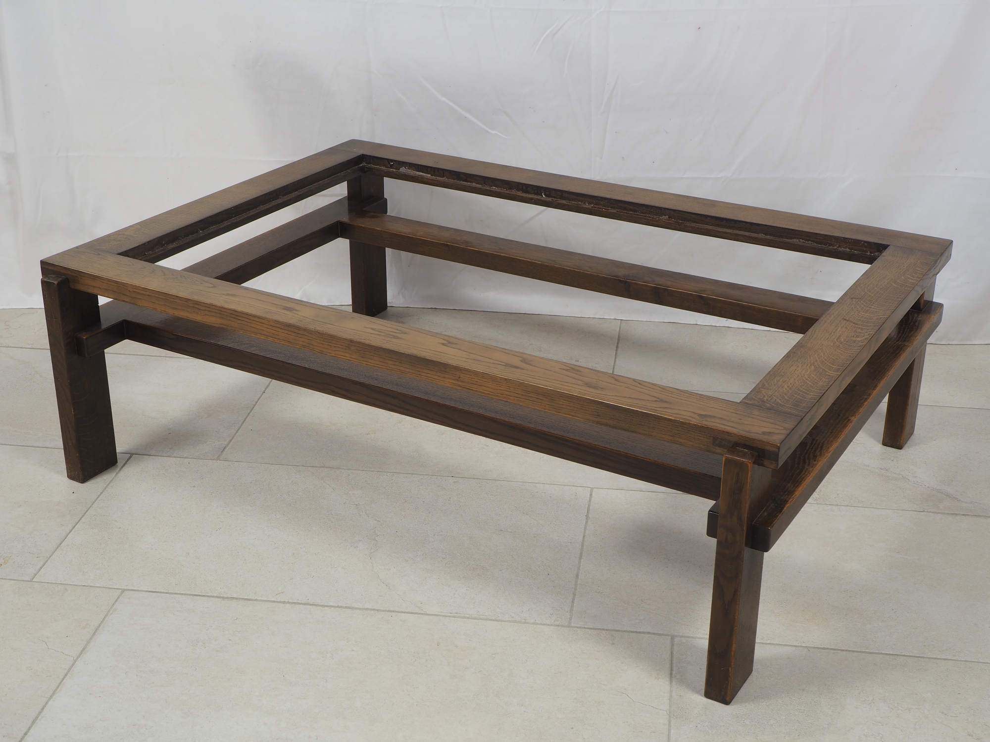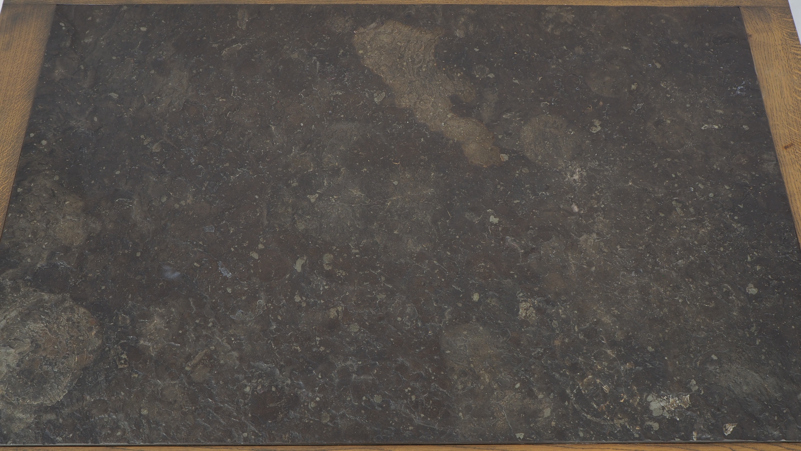 Robuster und stabiler Mid-Century Couchtisch oder Cocktailtisch. Massives Holzgestell mit originaler, strukturierten Schieferplatte (siehe Bilder). Der Schiefer ist in perfektem Zustand. Holzrahmen: Länge ca. 130 cm, Höhe ca. 40 cm, Breite ca. 94. Schieferplatte: Länge ca.111,5 cm, Breite ca. 72,5 cm, Höhe ca. 2,5 – 3 cm.