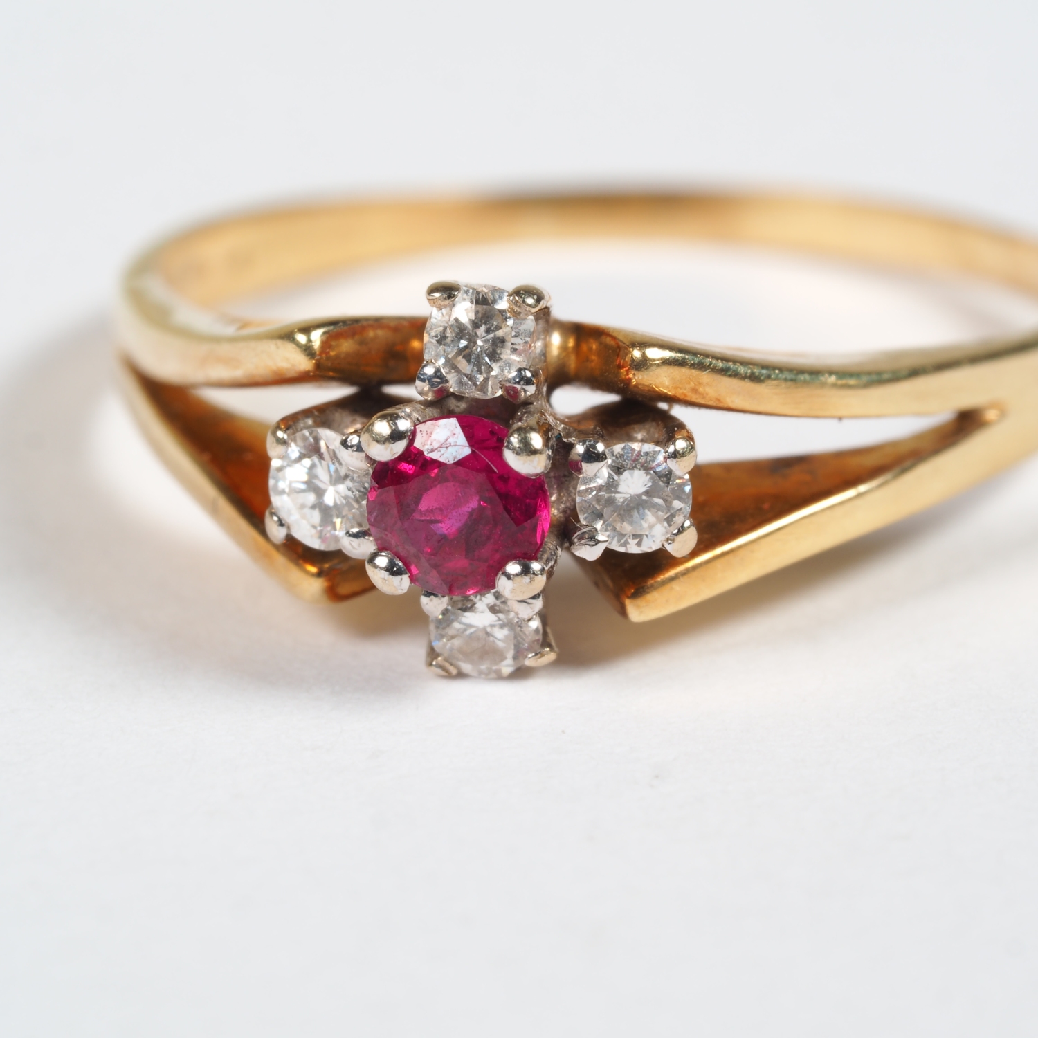 14K Gold Ring mit Rubin und Brillanten, in Kreuzform