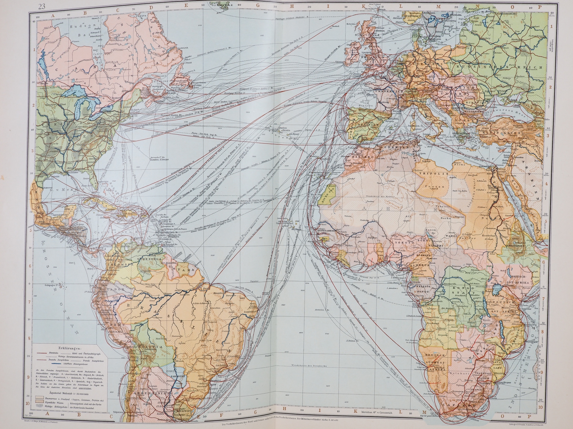 großer Atlas, herausgegeben von A. Scobel, zweiter revidierter Abdruck, Bielefeld und Leipzig, Verlag von Velhagen & Klasing 1907. Maße: 45 x 30 x 6,5 cm. Weitestgehend guter Zustand.