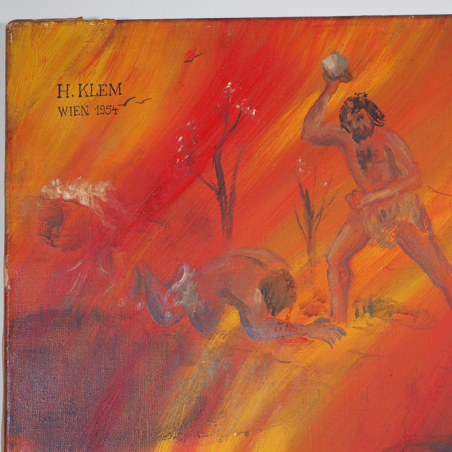 Öl auf Leinwand, links oben signiert und datiert "H. Klem, Wien 1954", wohl Hilde Klem, siehe auch Artothek des Bundes Wien. Maße: 120 x 120cm. Guter Zustand, reinigungsbedürftig. Aus privatem Nachlass.