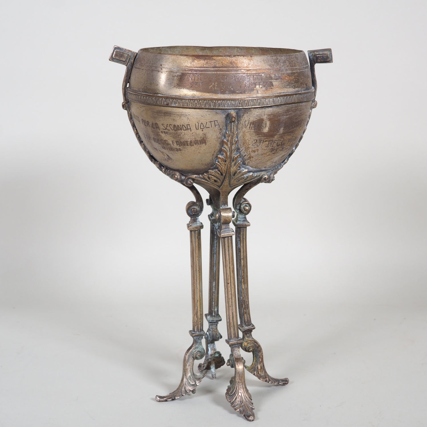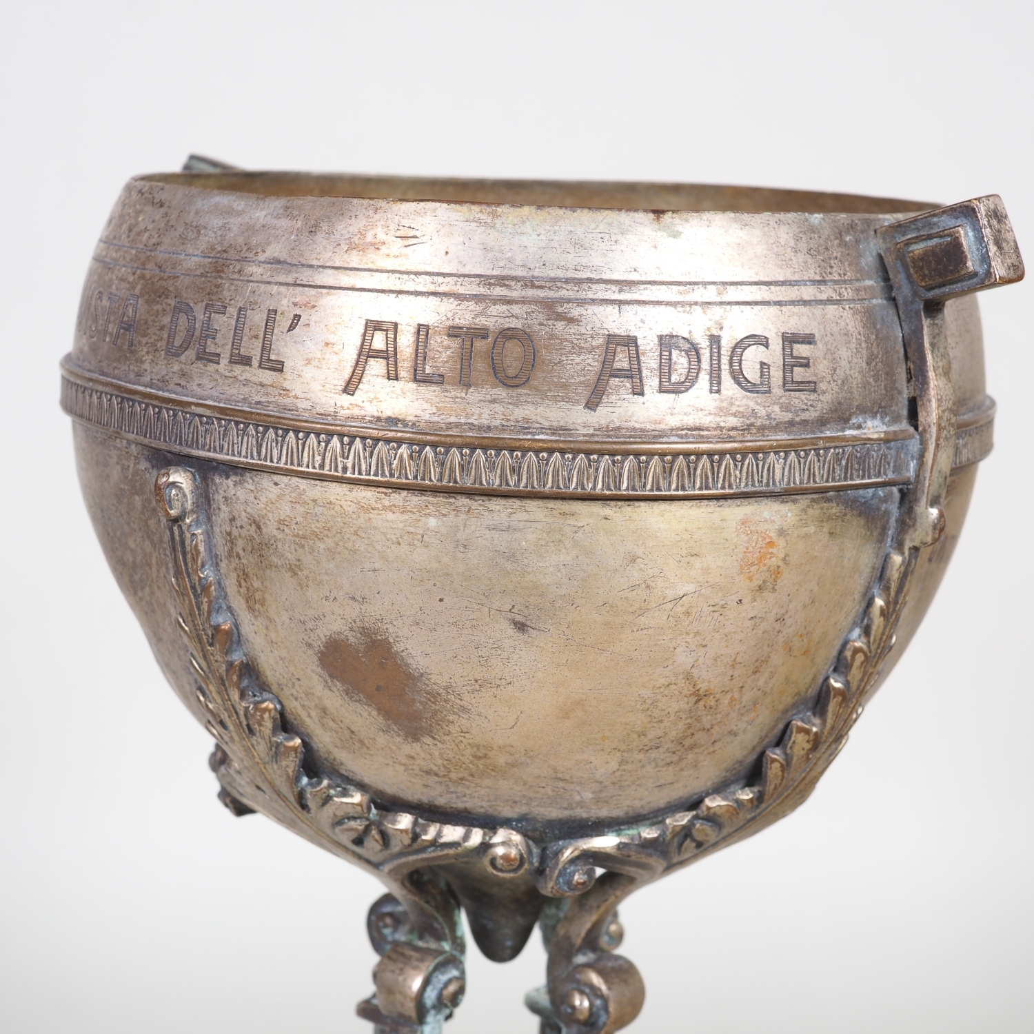 Pokal mit Schraubgewinden an den Beinenden, Inschrift Coppa Rivista Dell‘ Alto Adige