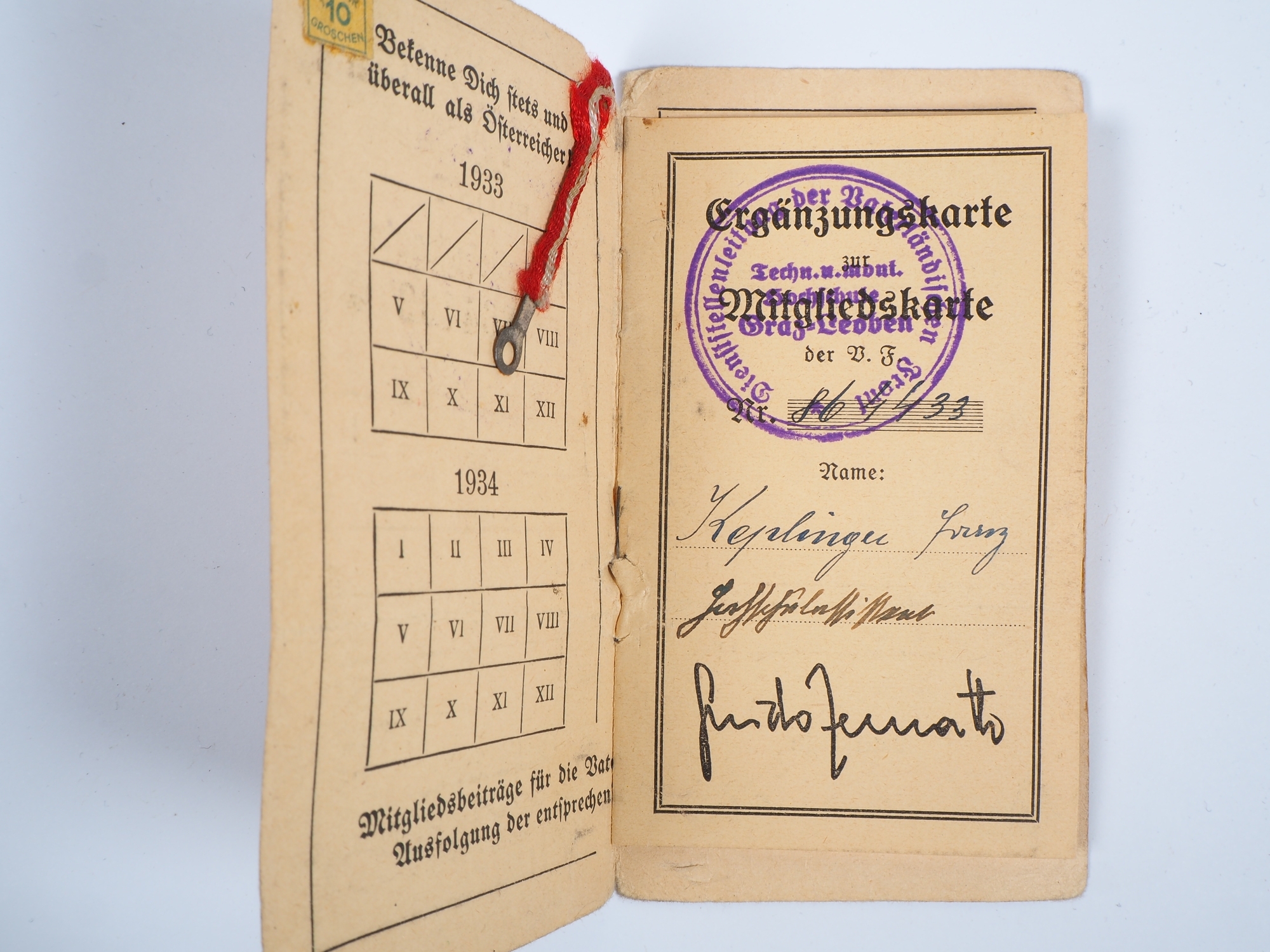 Ausweis Österreich Vaterländische Front Graz Leoben