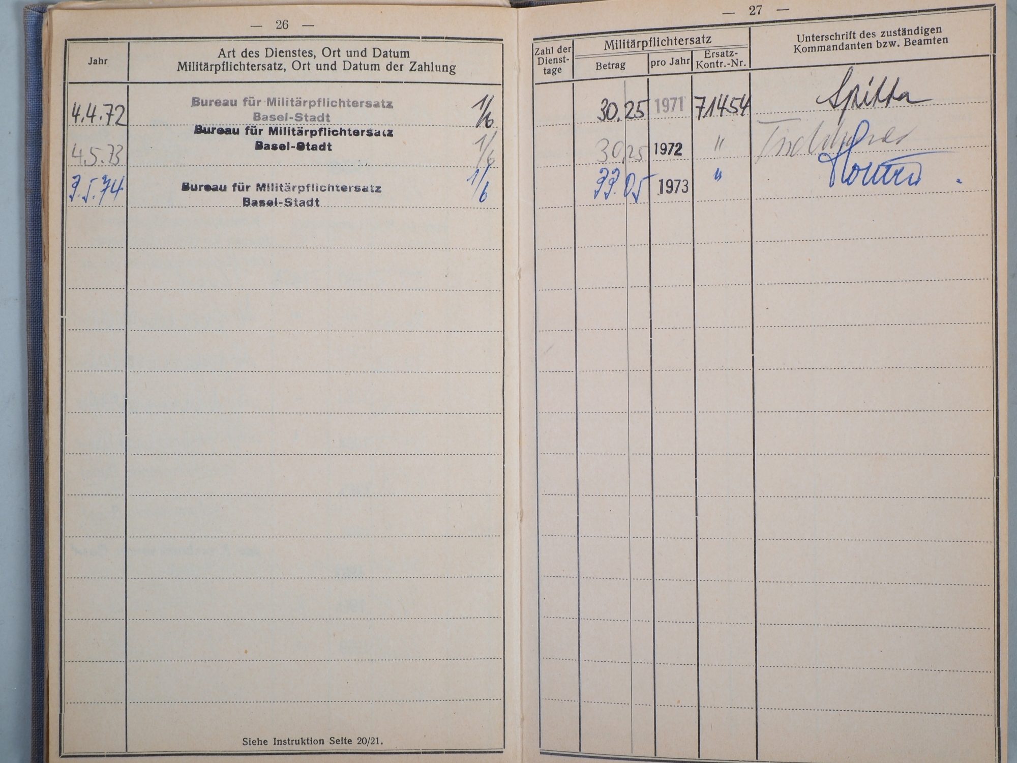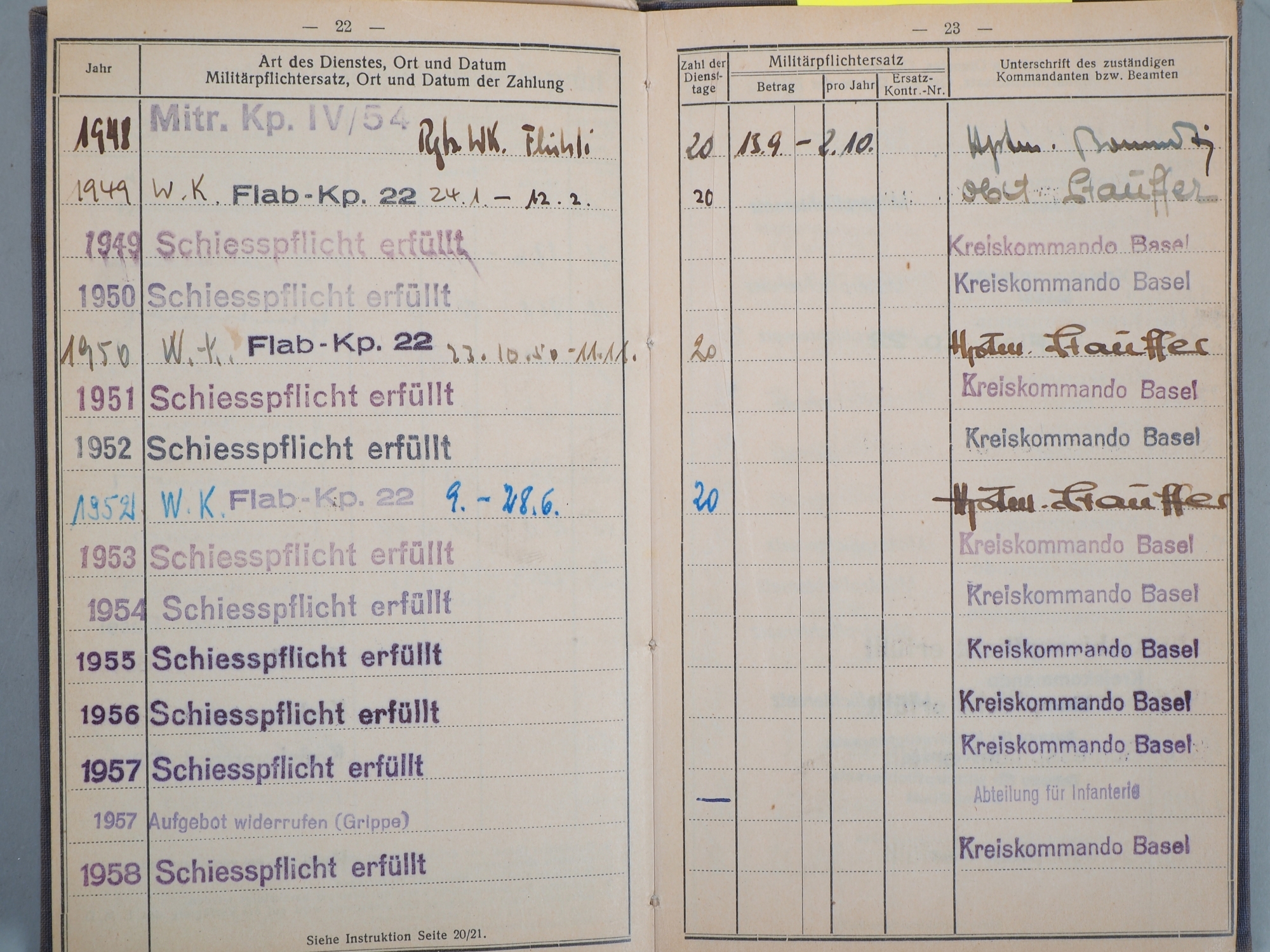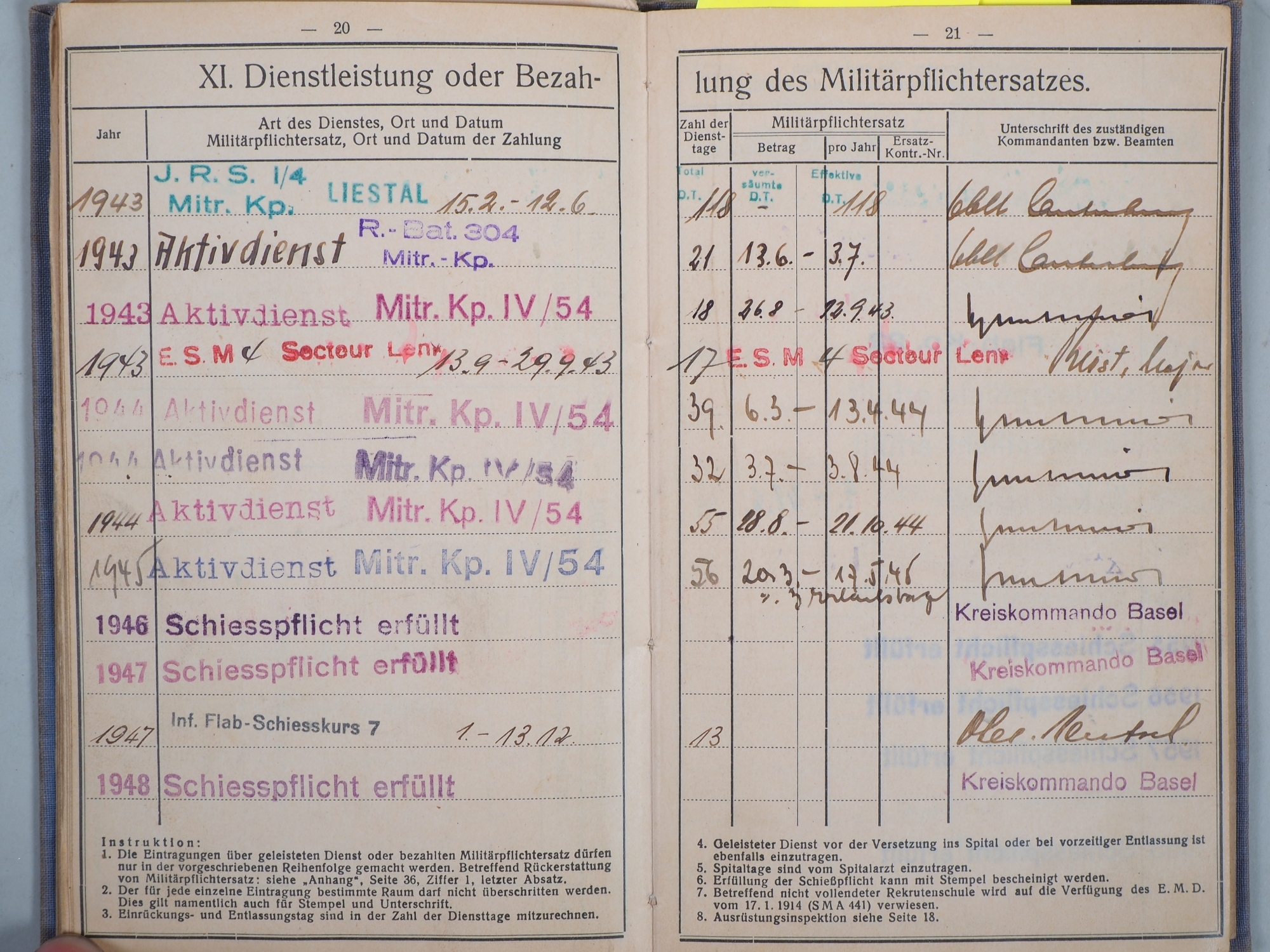 Schweiz Dienstbüchlein Militärpaß 1941-1974