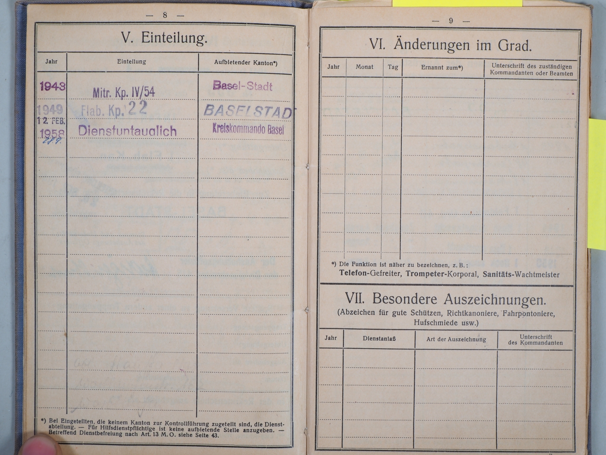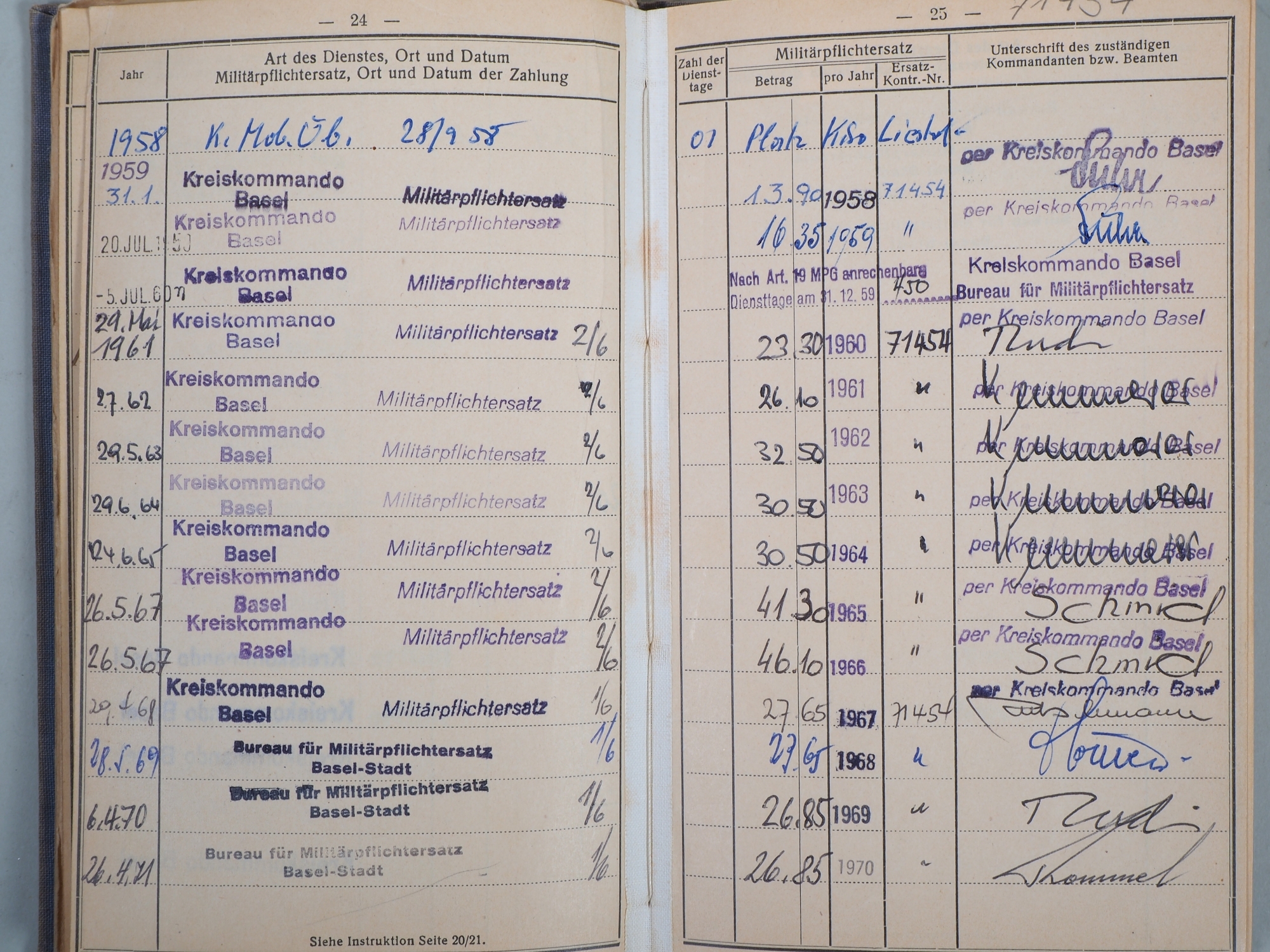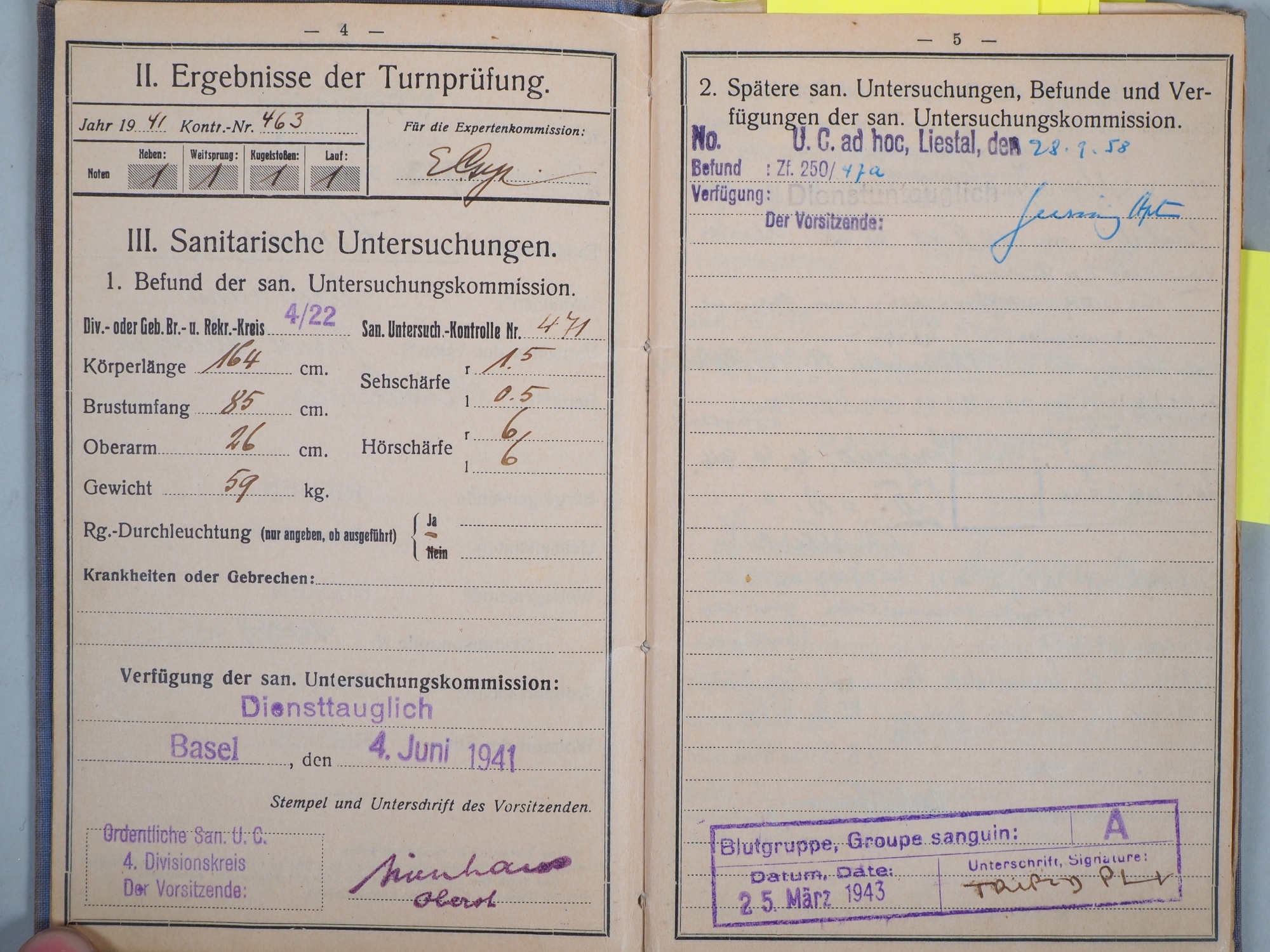 Schweiz Dienstbüchlein Militärpaß 1941-1974