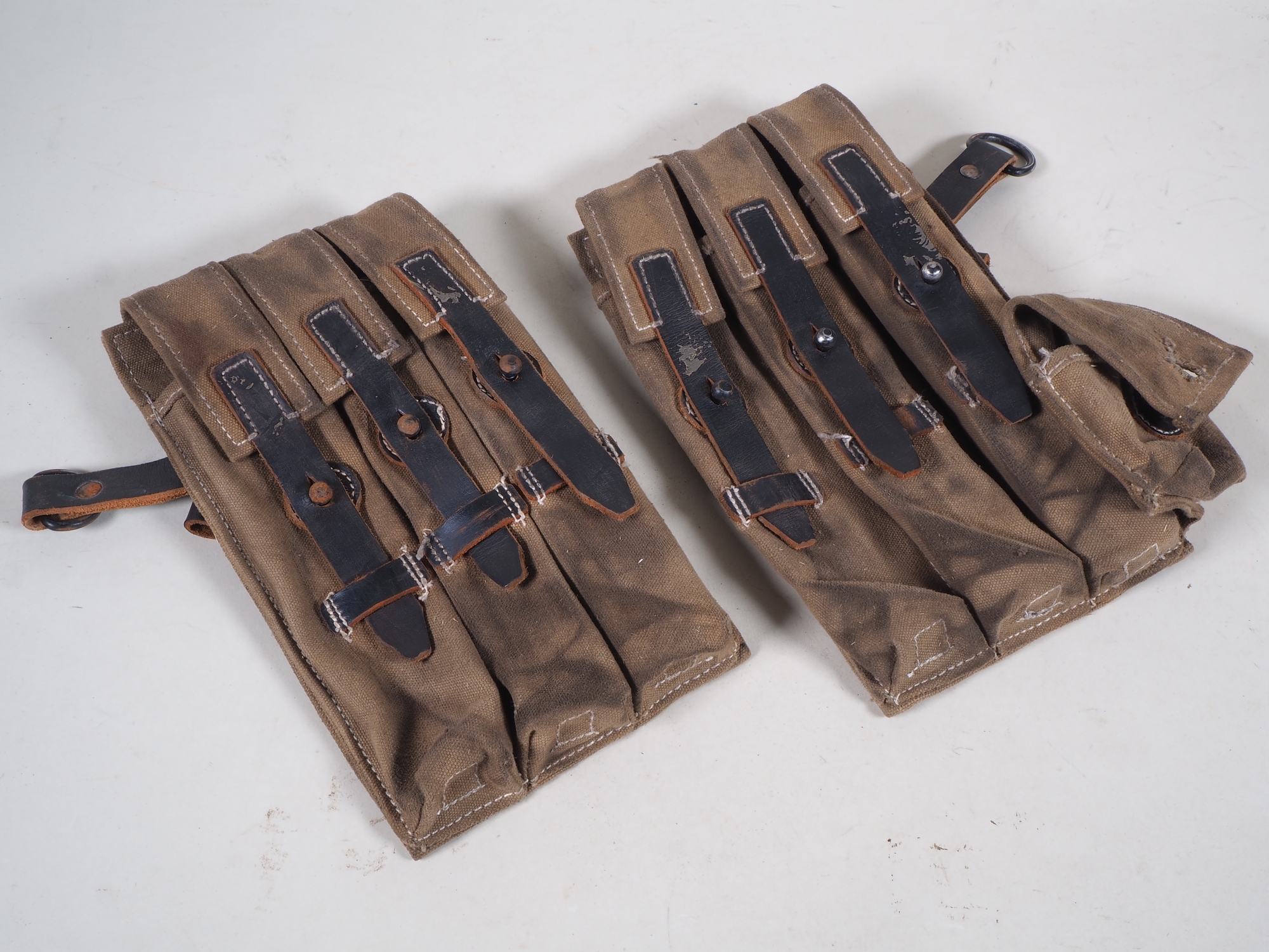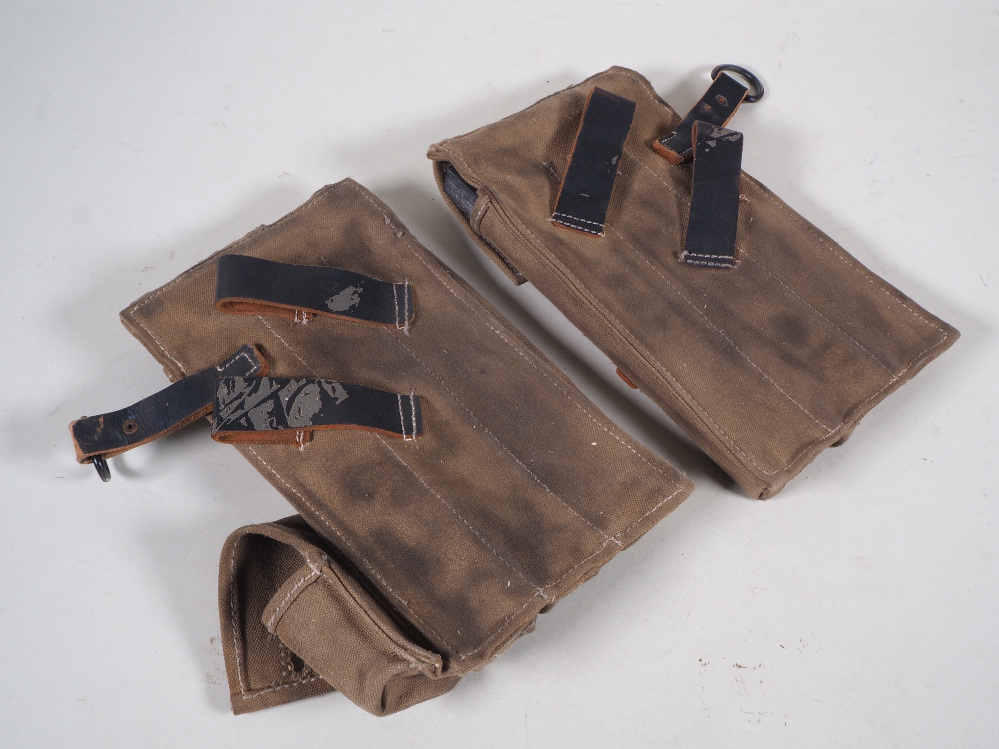 schöne Sammleranfertigung aus festem Baumwollgewebe und echt Leder, rückseitig gestempelt "gxy 1944", gealtert. (ohne Magazine). Für Reenactment oder Diorama, günstige neuzeitliche alternative.