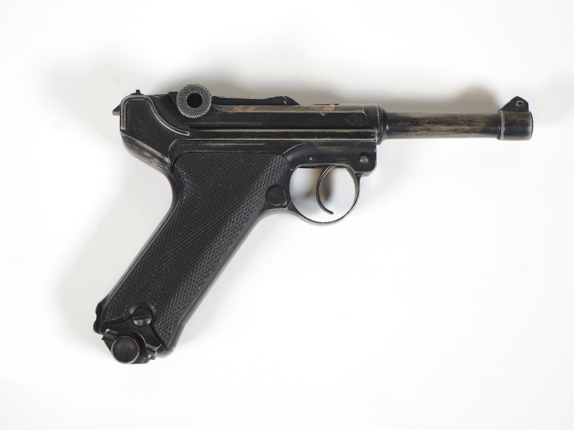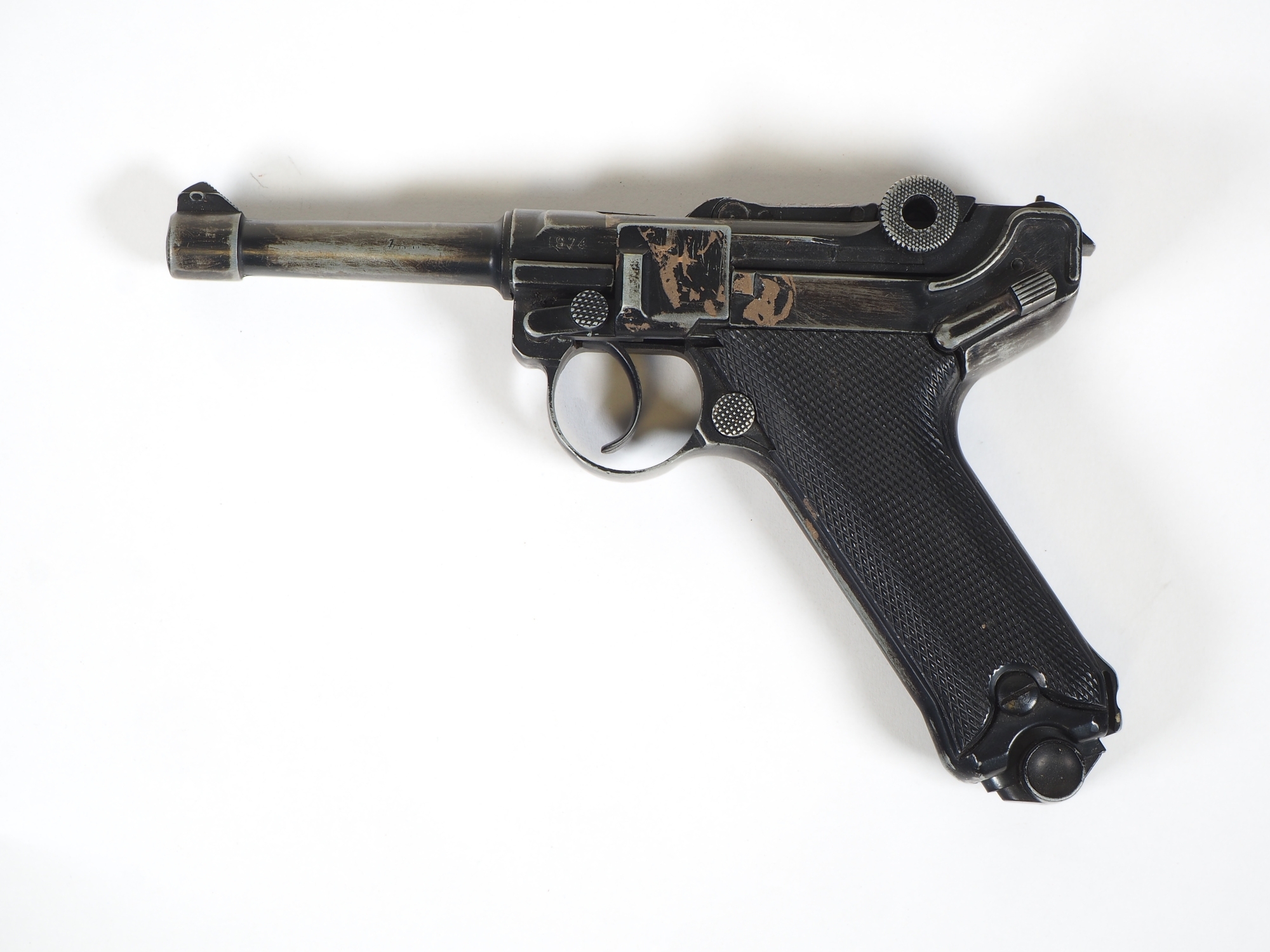 nicht schussfähige neuzeitliche Replika nach Originalvorlage, originalgetreuer Nachbau aus Metall mit beweglichem Kniegelenk-Verschluss. Verschlossener Lauf. Herausnehmbares Magazin mit Patronen Attrappen. Nachweisfrei erhältlich / legaler Besitz. Ideal für Reenactment oder Diorama Schaufensterpuppe, günstige und frei erhältliche Alternative.